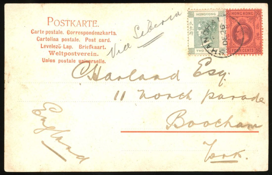 1904 (26 Dec) picture postcard to England bearing QV 2c and KEVII 4c tied by Shanghai c.d.s.,fine.