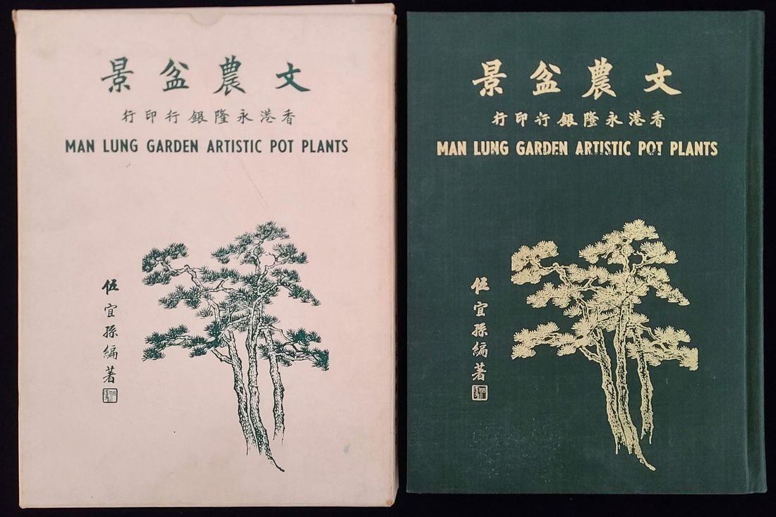 1969年初版 "文農盆景", 精裝本, 伍宜孫編著, 由香港永隆銀行印刷發行, 書中部份插圖以彩色印刷. 帶原裝書套.