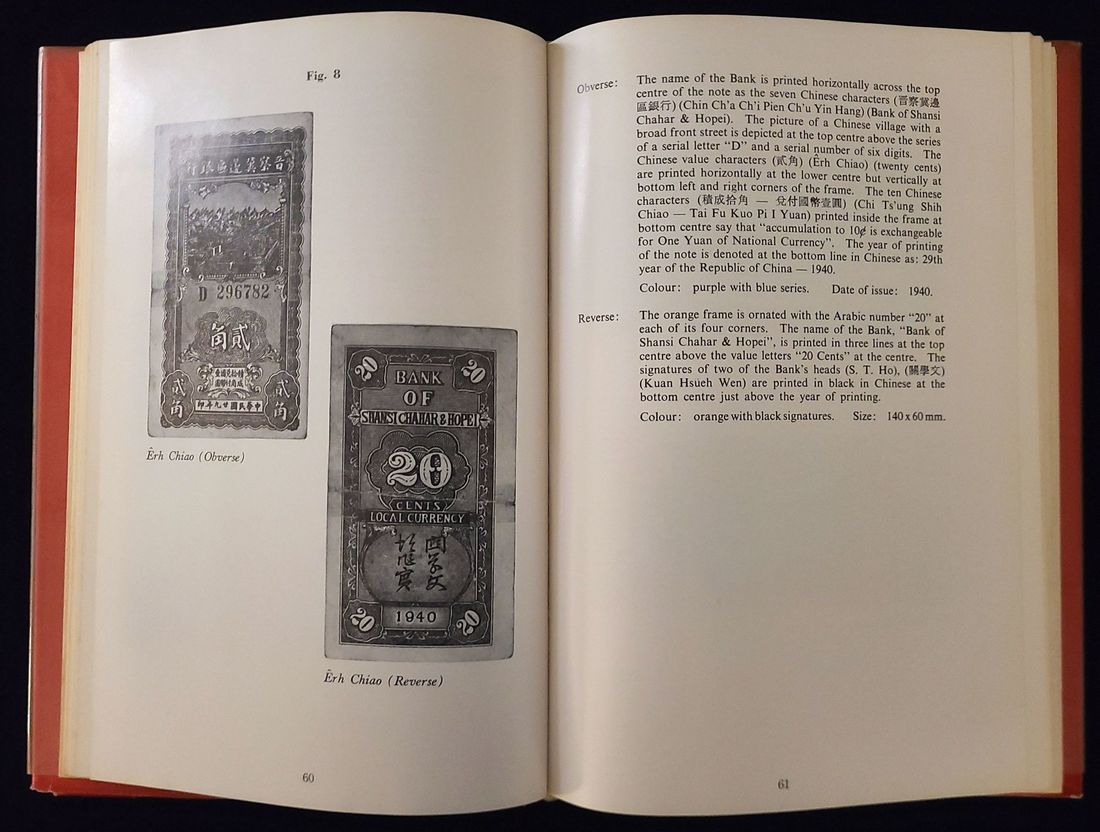 1972 First edition of "History of Paper Currency as Issued by The People's Republic of China from 1921-1965," by Mao King-On. Published by Chap Yau Printing Company in Hong Kong. Hardcover in English with a few Chinese inserts. Some minor handwriting on the inside pages.