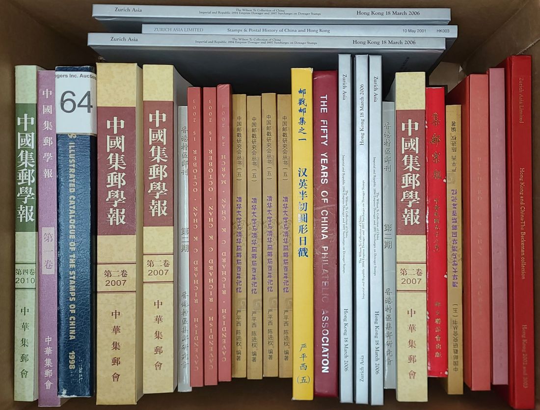 A cartoon box of auction catalogues, good for reference.
