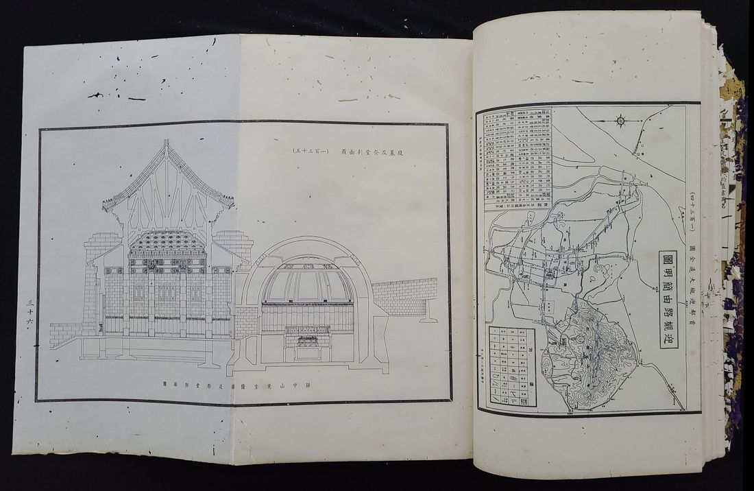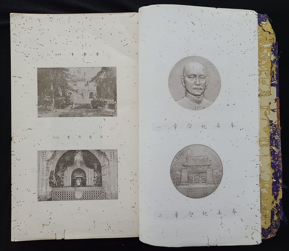 1929 "Records of the Prime Minister Burial" is a huge volume (24 x 35 cm), with original cover (broken and moth-eaten), thread-bound, front and back cover are embroidered with brocade. The title of the book and the Zhongshan Mausoleum surrounded by clouds are embroidered in Yunjinzhi by hand. The upper part is very exquisite; there are moth-eaten and missing pages in the front and back of the book, but the pictures, maps and text are basically intact; this record is in the form of pictures and texts, and records in detail the entire process of Premier Sun? relocation of the Nanjing Sun Yat-sen Mausoleum from the Biyun Temple in Beijing. And the construction of Sun Yat-Sen Mausoleum, and the design sample paper of Sun Yat-Sen Mausoleum is attached. Although this book is somewhat incomplete, the original edition is really rare, so it does not lose its preciousness. Please preview.