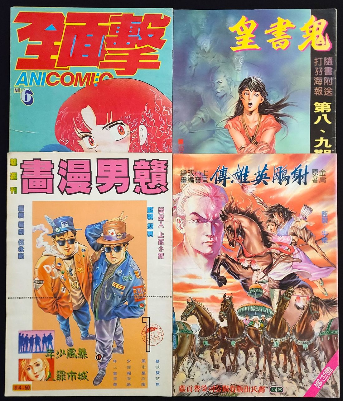 1980s four large Hong Kong comic books (26x380cm); including the first issue of "The Legend of the Condor Heroes" adapted and illustrated by Shangguan Xiaobao in 1987; 1987 "Handsome Manga" first issue, and Ghost Story, Ani Comic, etc.