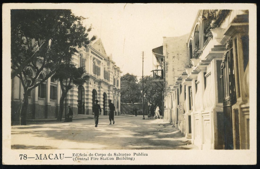 1920s a rare real photo postcard featuring the Macau Fire Station on Estrada de Coelho do Amaral. This postcard was sent to Lisbon, Portugal in 1927.
