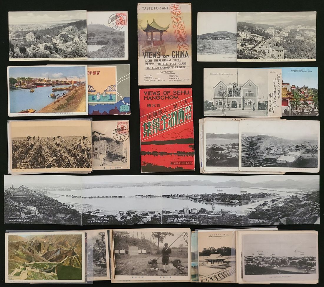 1910-1940年代中國各地風光明信片約七十餘枚, 其中包括少見的杭州西湖四枚連續明信片(帶原封套), 南京鼓樓, 天津英國軍營, 天律中央警察局, 安東縣名勝套片十二枚等等, 內容包含面廣, 不能盡錄. 敬希預覽.