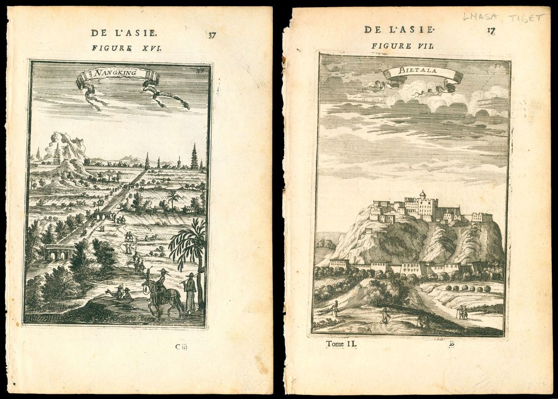 1600-1700 four pages of engraving illustrations on China in Western books of the seventeenth century; They are the Chinese emperor, the official couple, Nanjing and the Potala Palace in Tibet.