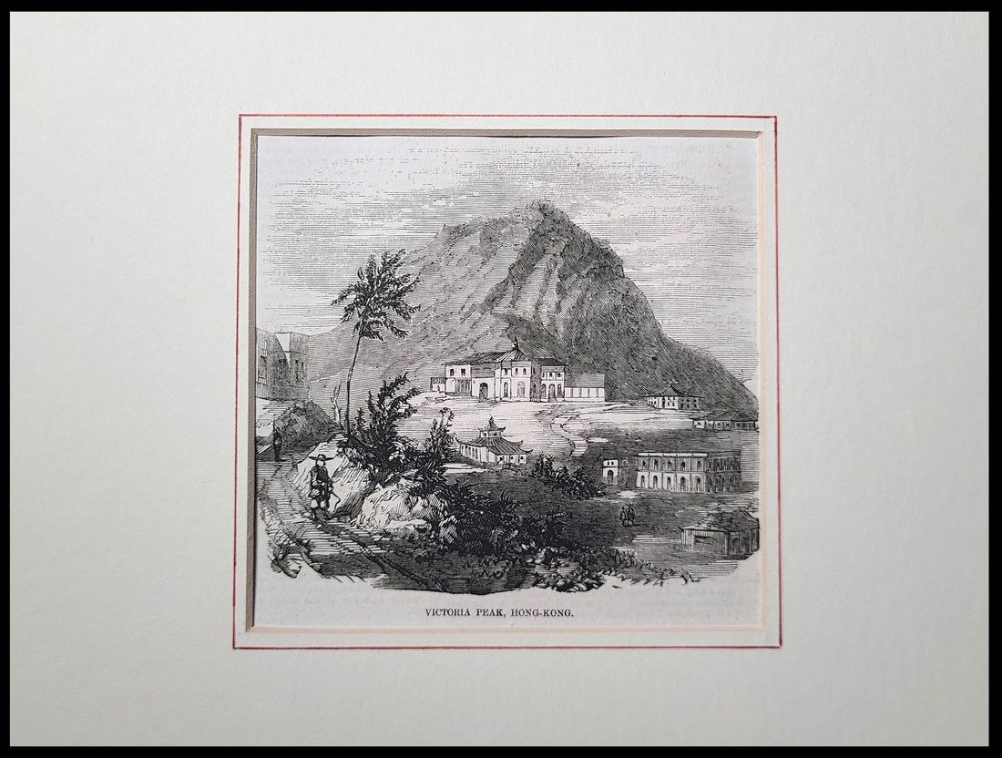 1857 a pair of Printed painting of Pedder's Hill and Victoria Peak. Both mounted size: 31 x 24cm