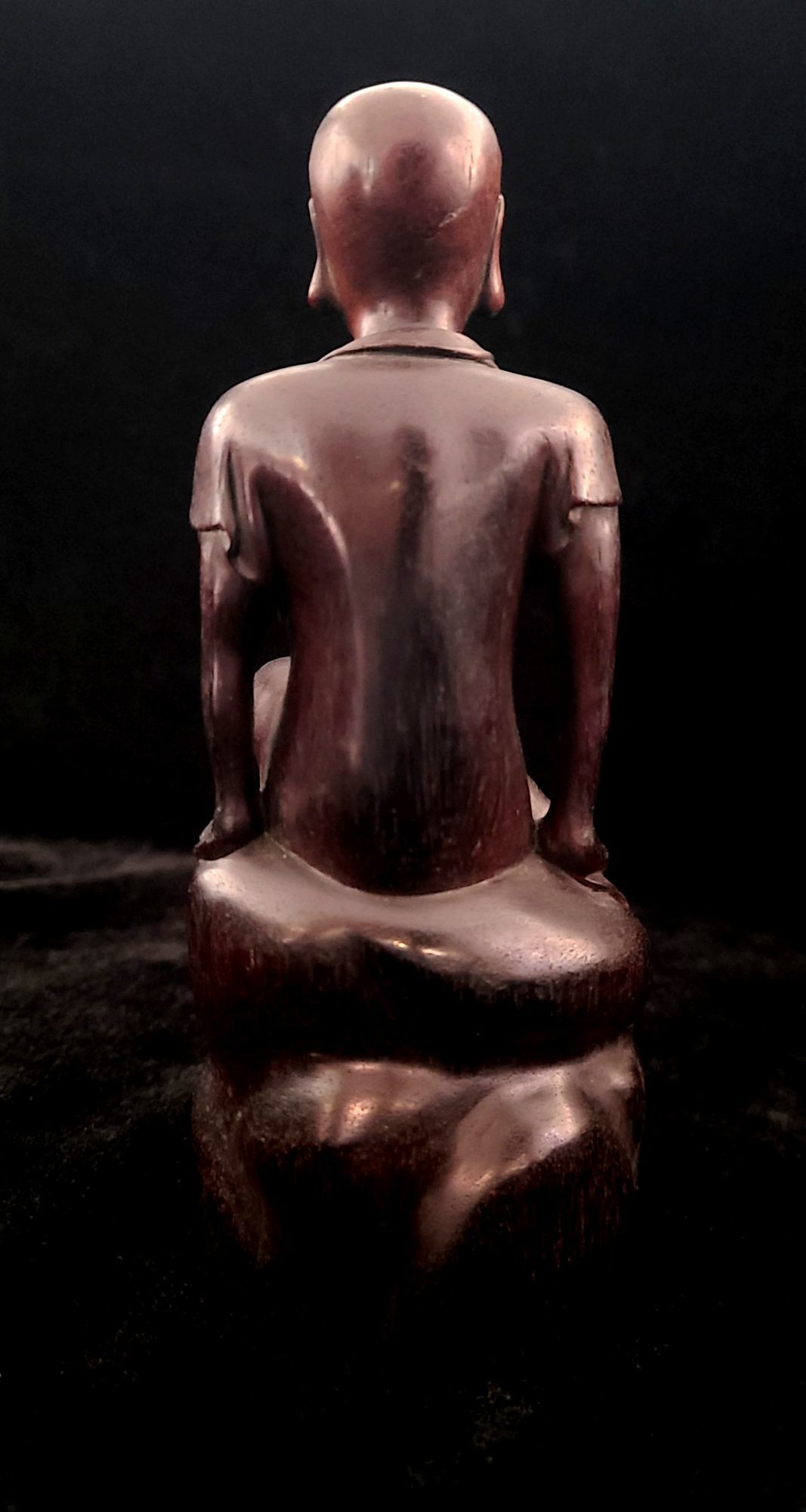 印度小葉紫檀靜坐羅漢一尊. 彫像衣褶紋理流暢, 笑容可掬安祥. 包漿和潤. 實乃最佳的案頭擺件. 尺寸: 高15cm, 座寬6cm