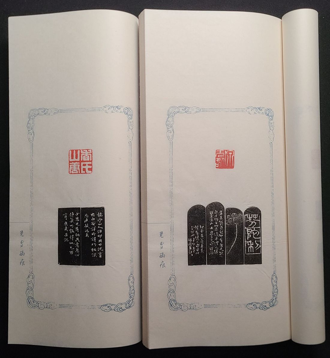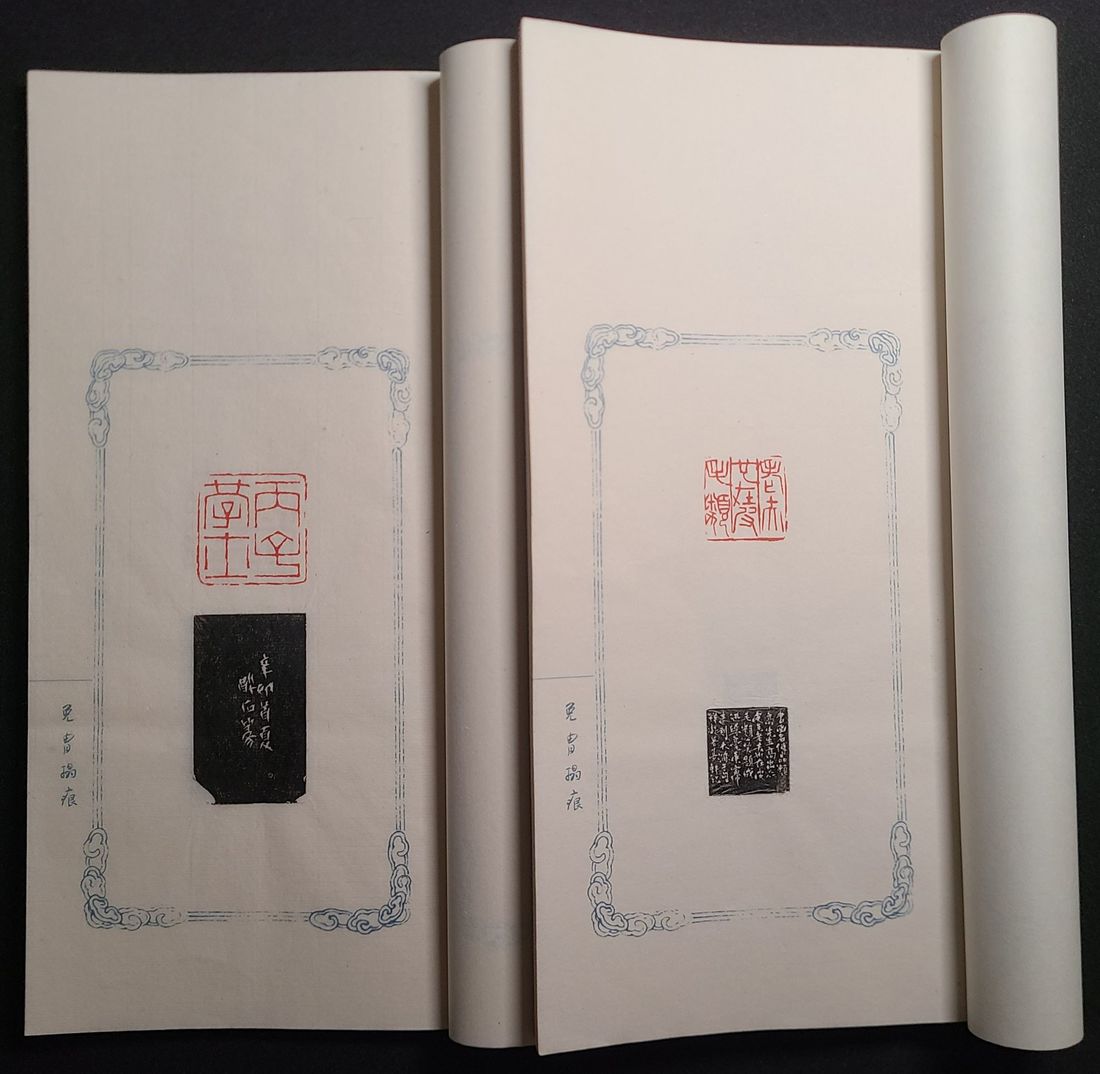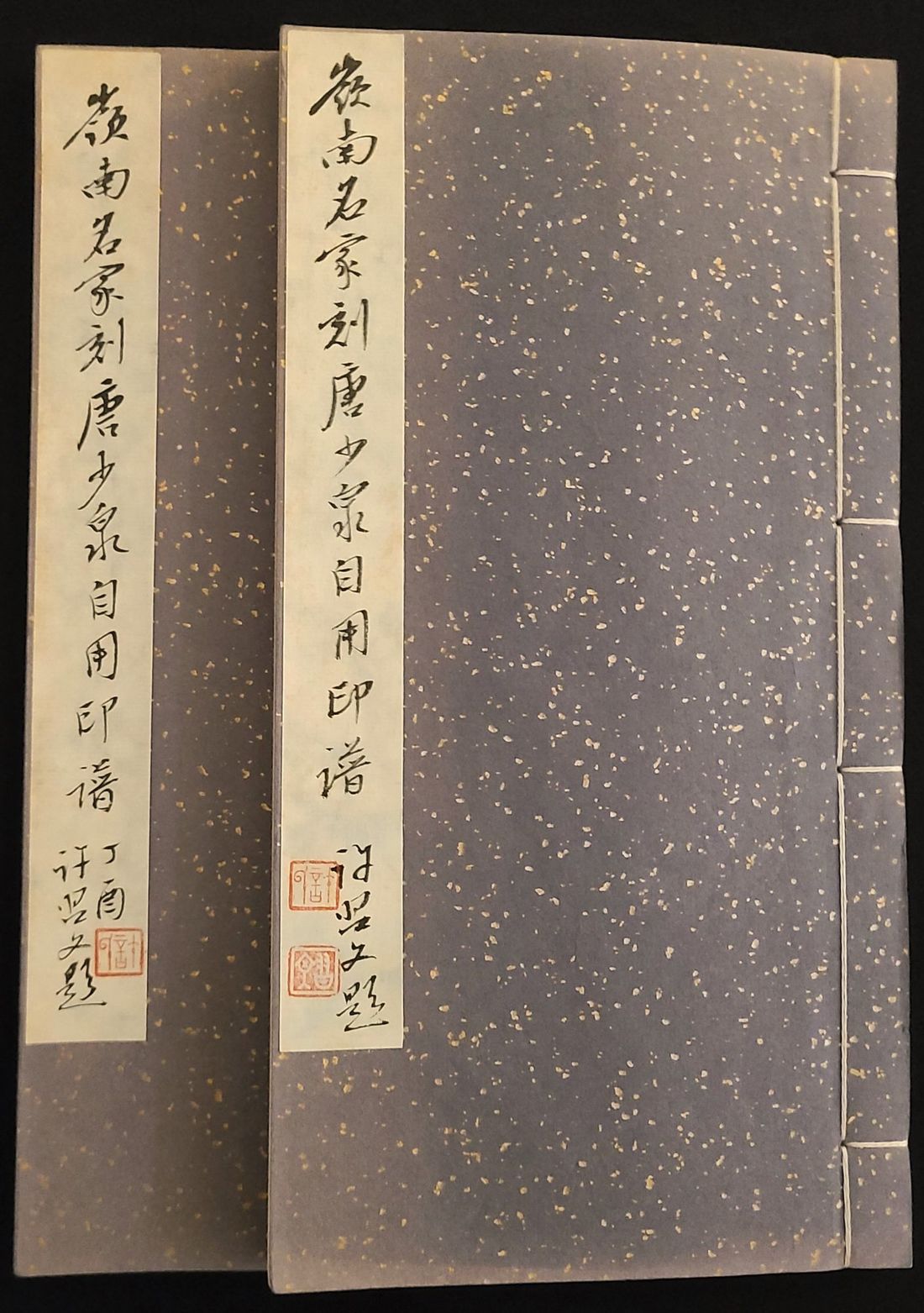 "嶺南名家刻唐少泉自用印譜" 两卷, 手工精拓本, 線裝. 共收印章約七十枚, 皆為篆刻名家於上世紀40-50年代間為唐少泉先生治印. 包括馮康侯, 鄧爾疋, 唐醉石, 林千石及張祥凝等名家. 值得篆刻及藝術愛好者所珍藏.