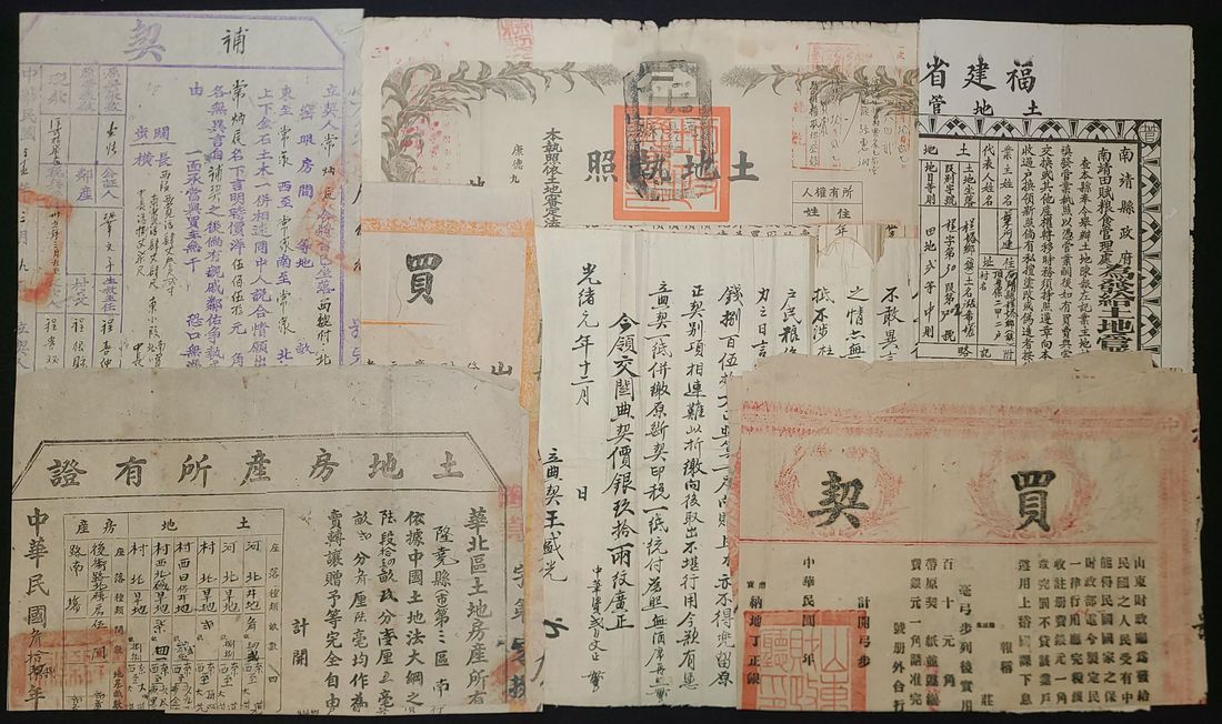 1890-1949年由清末到民國時期中國各地的房産買賣契紙共十九份, 是了解當年房産買賣情况的最佳素材.