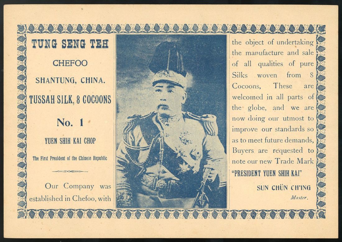 1910s Chefoo "Tung Seng Teh" advertisingleaflet, printed with the Portrait Yuen Shih kai, the first presient of ROC, as a tradmark. Size: 18 x 25.8cm