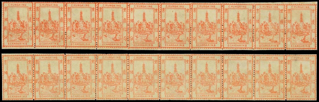 1894 (Mar.) First issue later printing 2ca. red in complete sheet of ten with closed selvedge all round, total two sheets, mint, toned, still fine, Chan LCK2. Photo