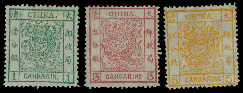 1ca. to 5ca. set of three, bright colours, very fine and fresh unused with much original gum, the 1ca. is lightly hinged while the two other values unmounted. Chan 1-3. Photo
