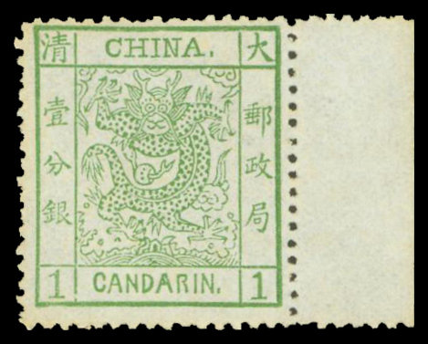 1ca. green marginal single, mint, bright surface colour, fresh appearance. Chan 1. Photo
