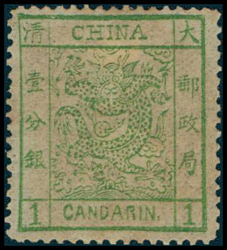 1ca. clean-cut perfs., bright green, unused with large part origin gum, toned, still fine. Chan 7. Photo
