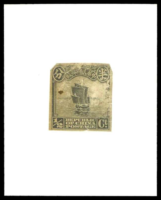 ½c. sepia, imperf. colour proof stuck on white card (52 x 66 mm), surface with small few defects, still rare. Photo