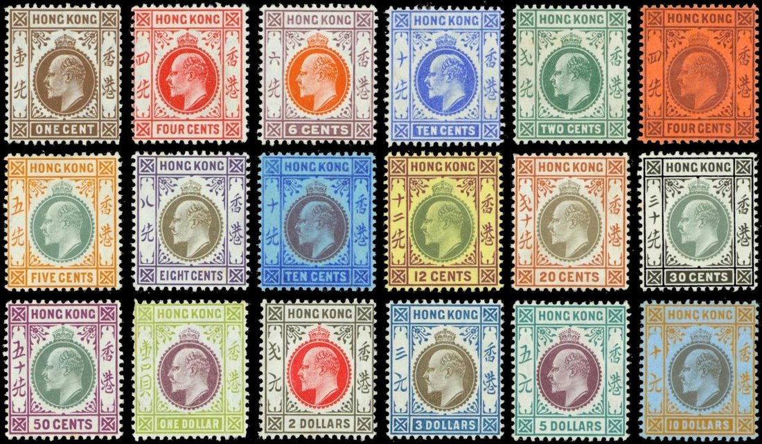1c. to $10 set of fourteen unmounted mint; 5c. with hinge remainder and a couple with light tone spots, $10 is on chalky paper. Also 1907-11 values to 10c. S.G. 27-90b, £3250+. Photo