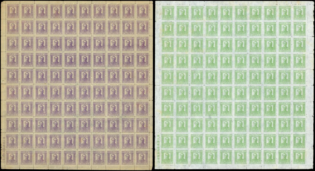 1948 Chairman Mao, third print, with watermark, set of two in complete sheets of one-hundred, unused without gum as issued. Yang NE111-112. Photo