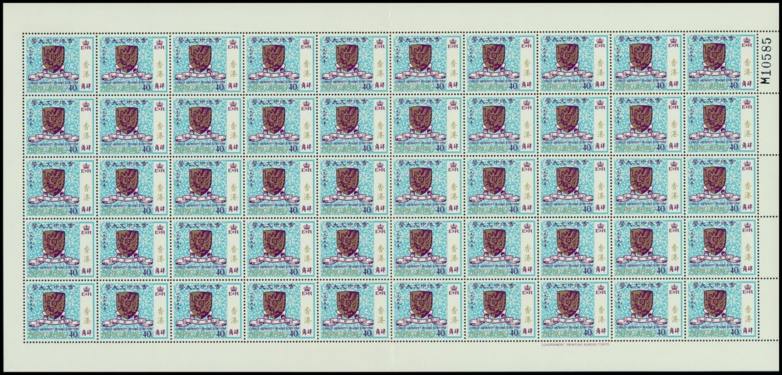 1969 Establishment of the Chinese University of Hong Kong in complete sheet of fifty, unmounted mint, folded, still very fine. Yang C59. Photo