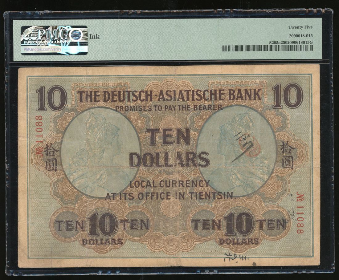 (Pick S295a), PMG 25, Ink. One of only 6 in the PMG census, with 25 being the highest grade! Rare and highly desirable. All Deutsch-Asiatische bank issued notes extremely rare!