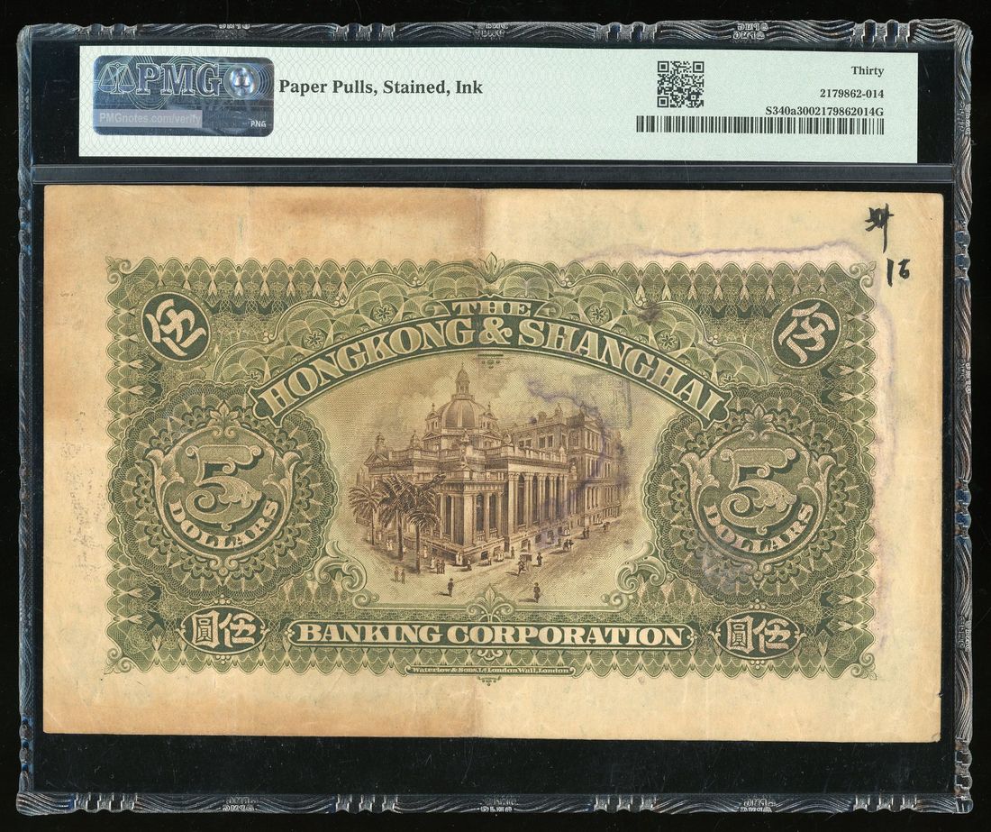 (Pick S340a), PMG 30, Paper Pulls, Stained, Ink. One of only 3 in the PMG census, with this example being the second highest grade and the top grade example marginally better at 35. An attractive handsigned note that is seldom seen on the market