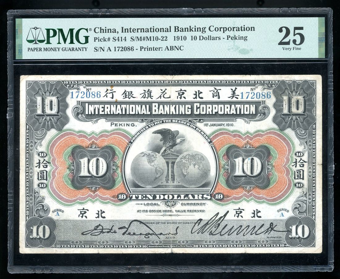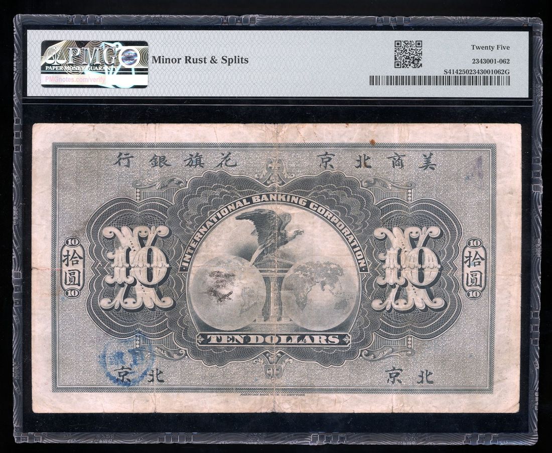 International Banking Corporation, China, $10, Peking, 1910, serial number 172086, printed Neergaard and Bennett signatures,