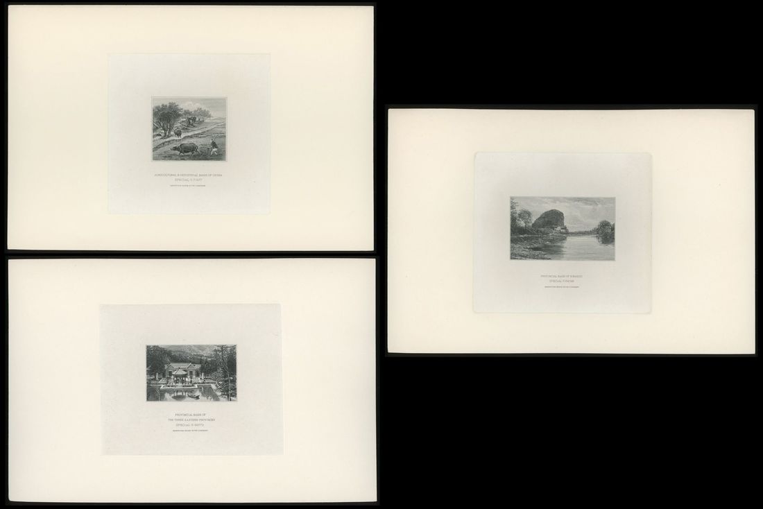 American Bank Note Company, China, group of 3x vignettes, Agricultural and Industrial Bank of China, farmer and buffalo as seen on the obverse of the 1932 1, 5, 10 Yuan and the 1934 1 Yuan; Provincial Bank of Kwangsi, mountain and house by riverside as seen on the obverse of the 1929 issue; Provincial Bank of The Three Eastern Provinces, house as seen on the obverse of the 1929 issue of 1 to 100 Yuan,