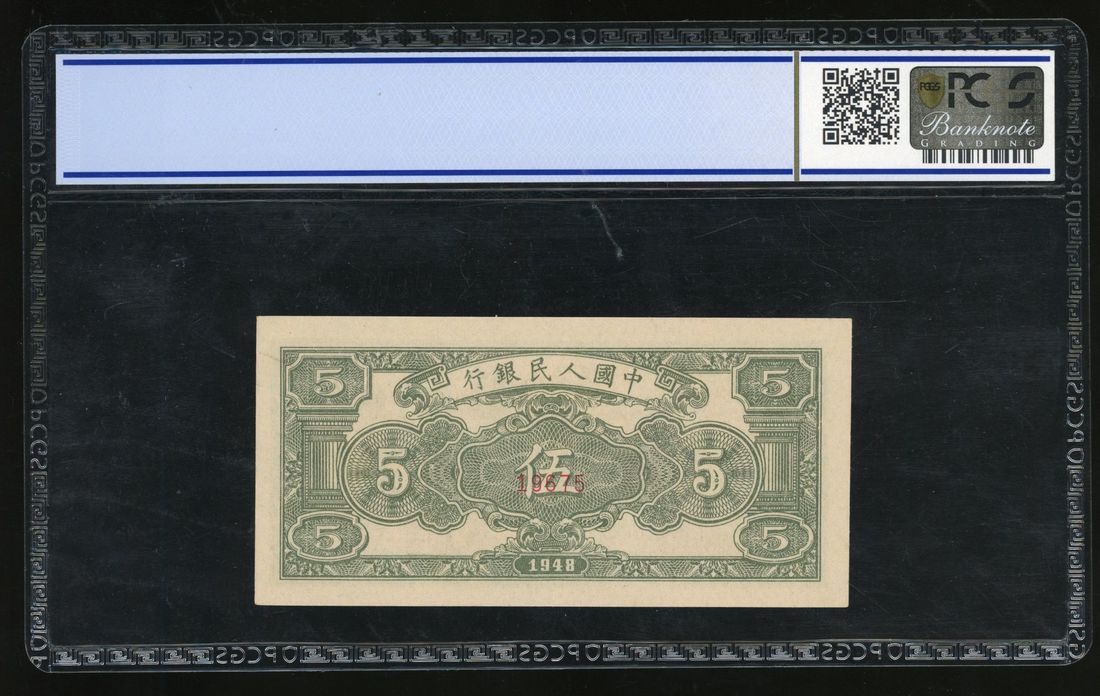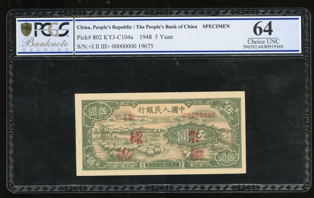 People's Bank of China, 1st Series Renminbi, 1948, specimen 5 yuan, specimen number 19675, "Sheep Herd",
