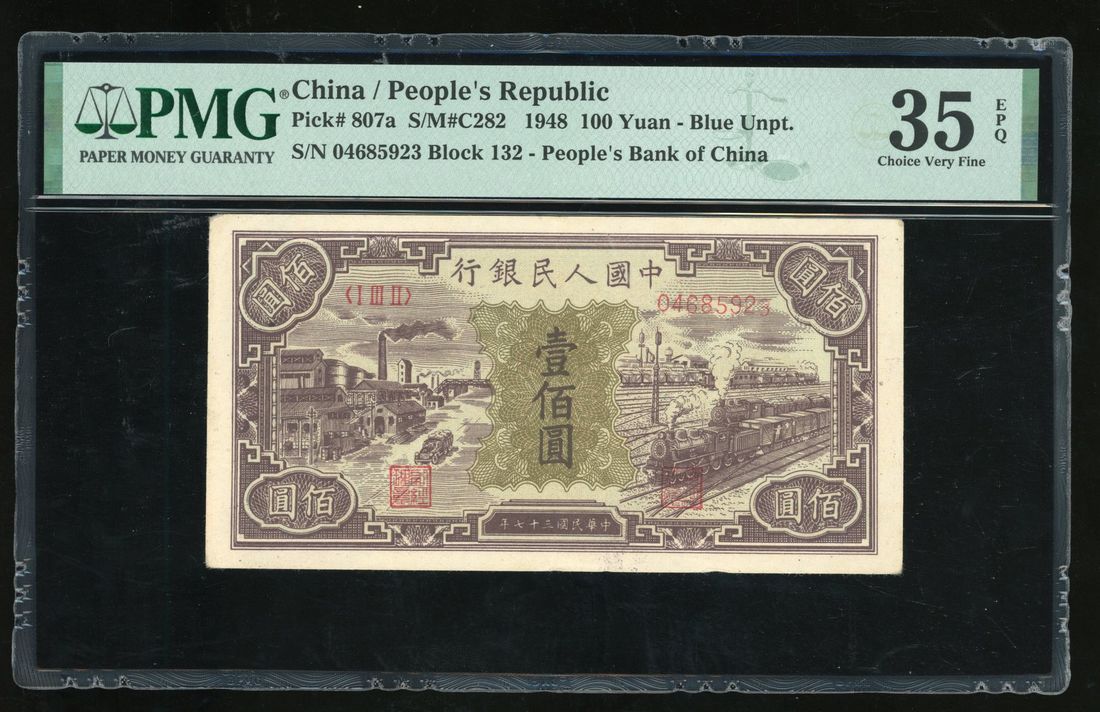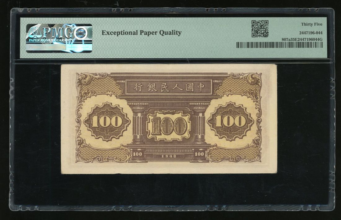 People's Bank of China, 1st Series Renminbi, 1948, 100 yuan, serial number I III II 04685923 "Black Factory",