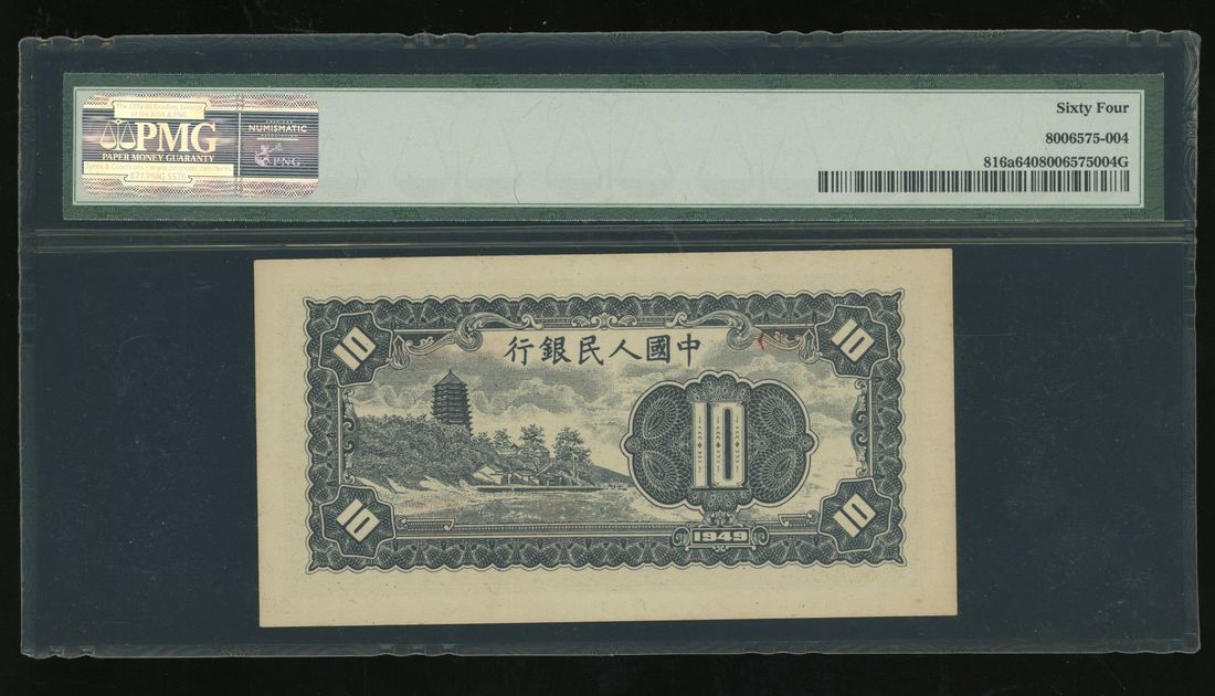 People's Bank of China, 1st Series Renminbi, 1949, 10 yuan, serial number I II III 08733148, "Farmer and Factory Worker",