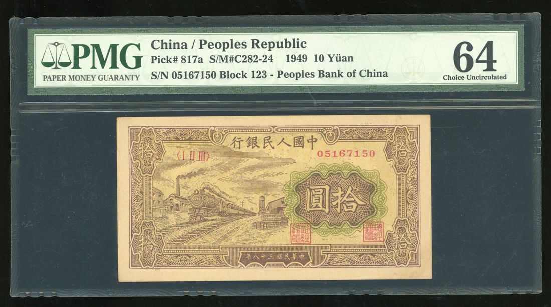 People's Bank of China, 1st Series Renminbi, 1949, 10 yuan, serial number I II III 05167150, "Yellow Train",