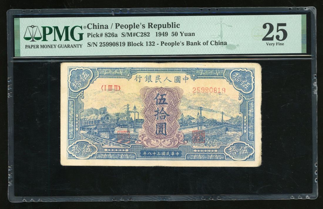 People's Bank of China, 1st Series Renminbi, 1949, 50 yuan, serial number I III II 25990819 "Blue Train",