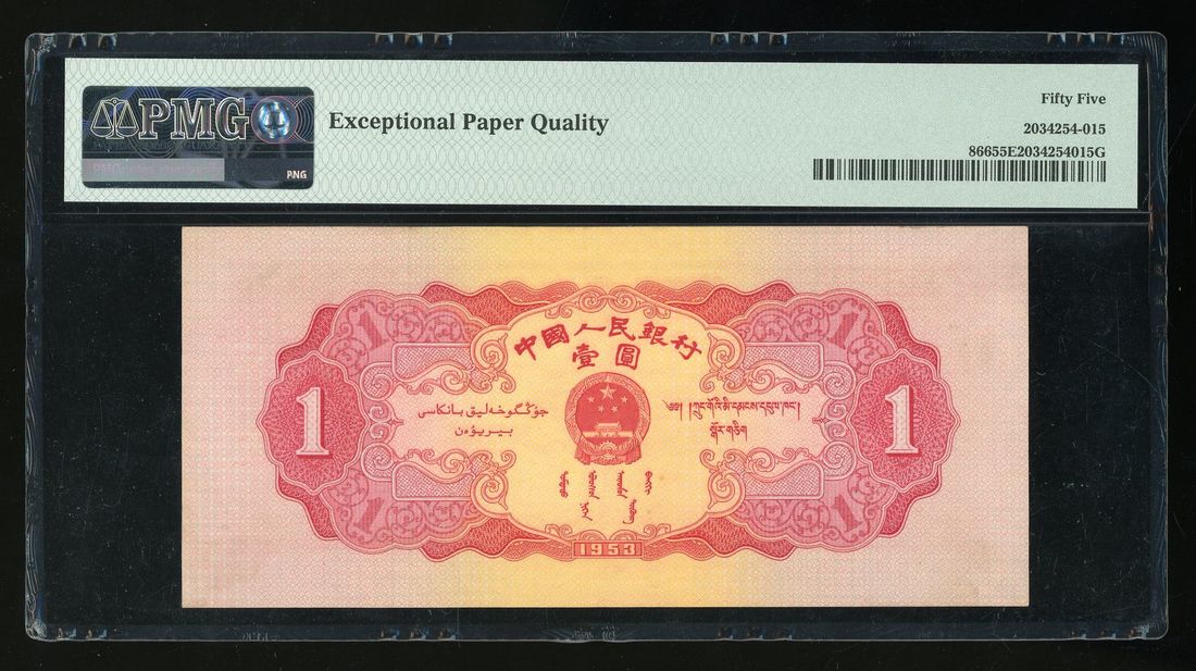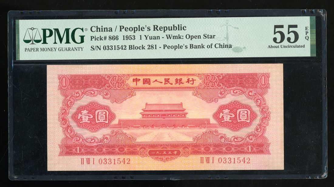 People's Bank of China, 2nd Series Renminbi, 1953, 1 yuan, serial number II VIII I 0331542, (Pick 866), PMG 55EPQ