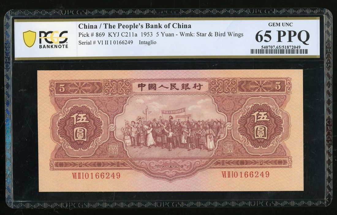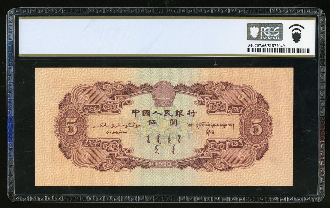 People's Bank of China, 2nd Series Renminbi, 1953, 5 yuan, serial number VI II I 0166249, Soviet printing issue,