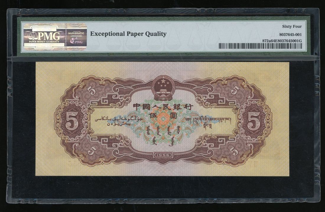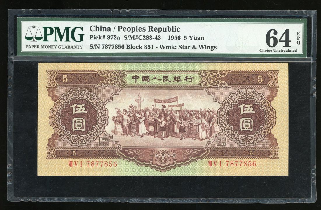 People's Bank of China, 2nd Series Renminbi, 1956, 5 yuan, serial number VIII V I 7877856, star and wings watermark,