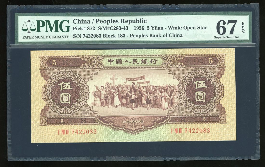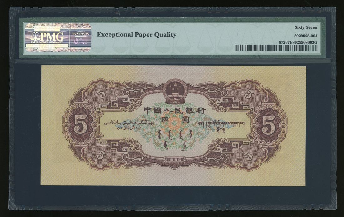 People's Bank of China, 2nd Series Renminbi, 1956, 5 yuan, serial number I VIII III 7422083, star watermark,