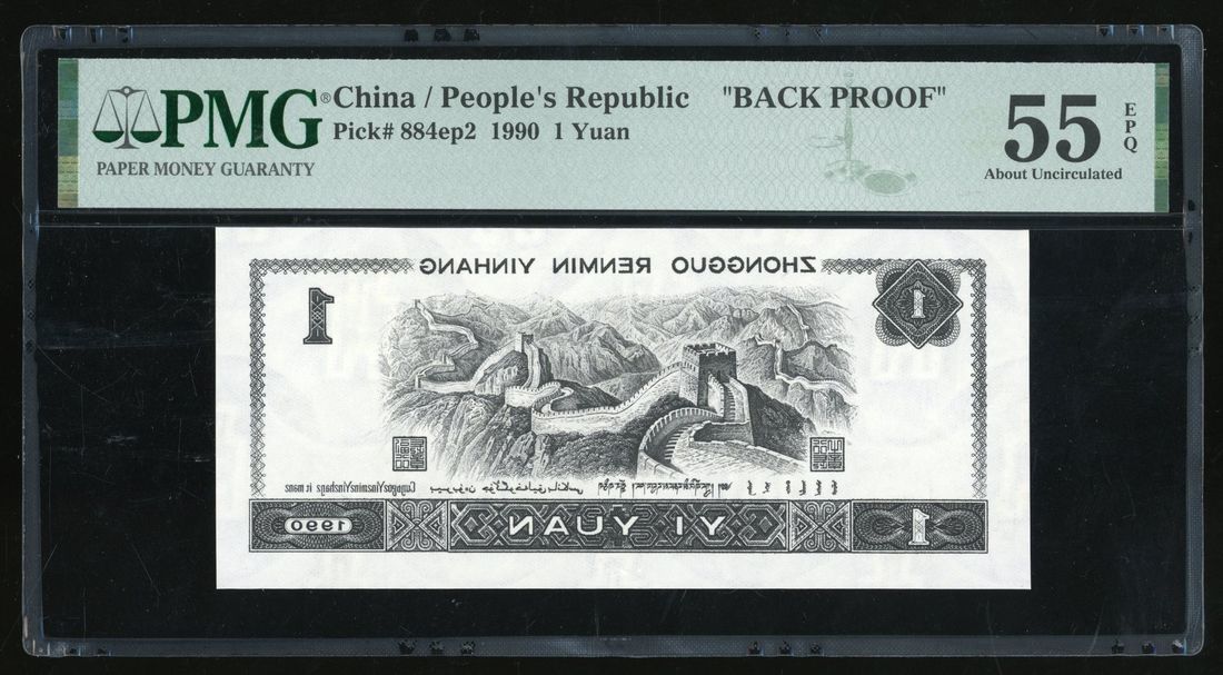 People's Bank of China, 4th Series Renminbi, 1990, a uniface reverse negative plate printing for 1 yuan,, black and white, Great Wall at centre, Bank title at upper border, denomination at corners,