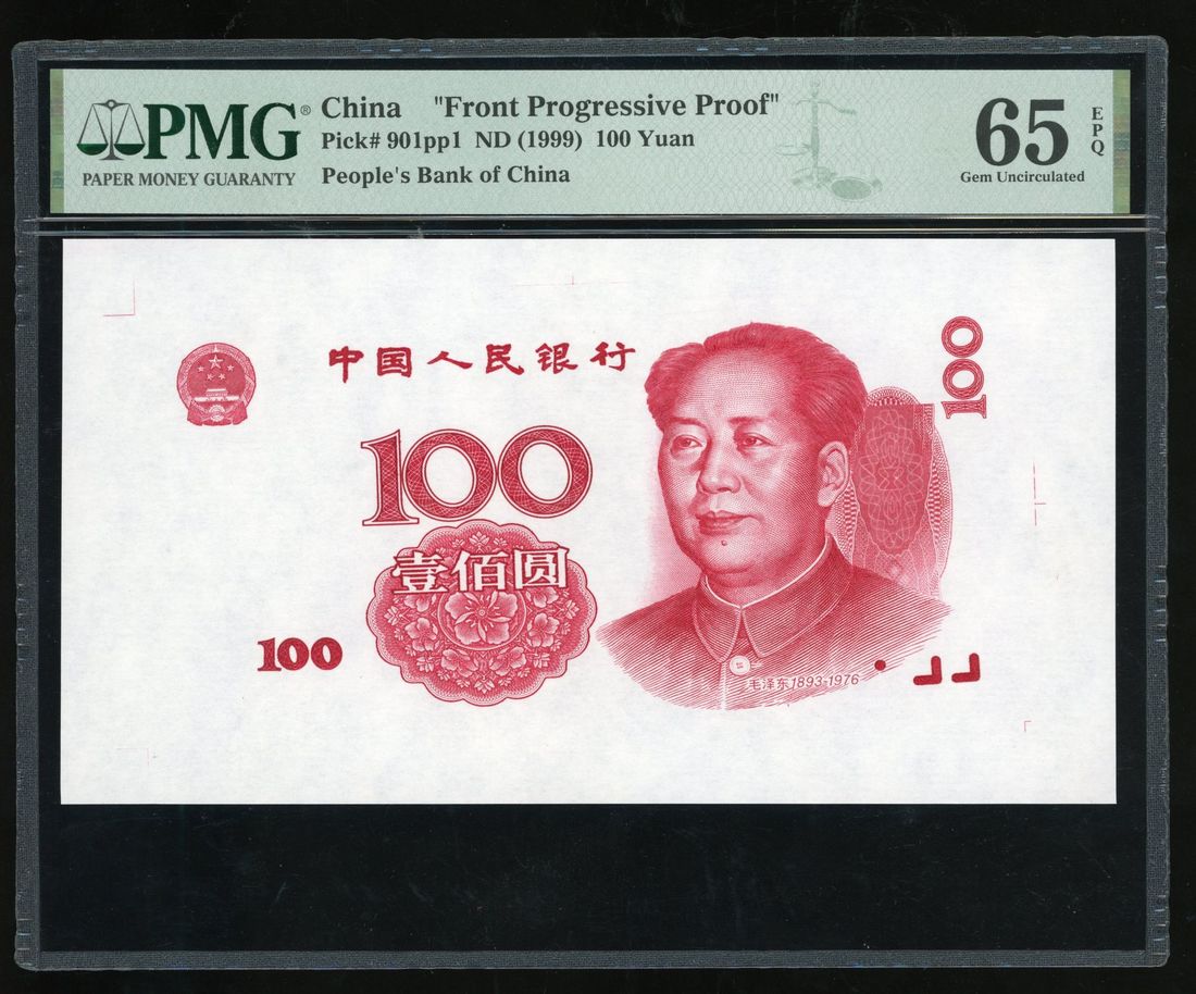 People's Bank of China, 5th Series Renminbi, 1999, uniface obverse progressive proof for 100 yuan, with overprints only, missing guilloche patterns, Mao ZeDong at right,