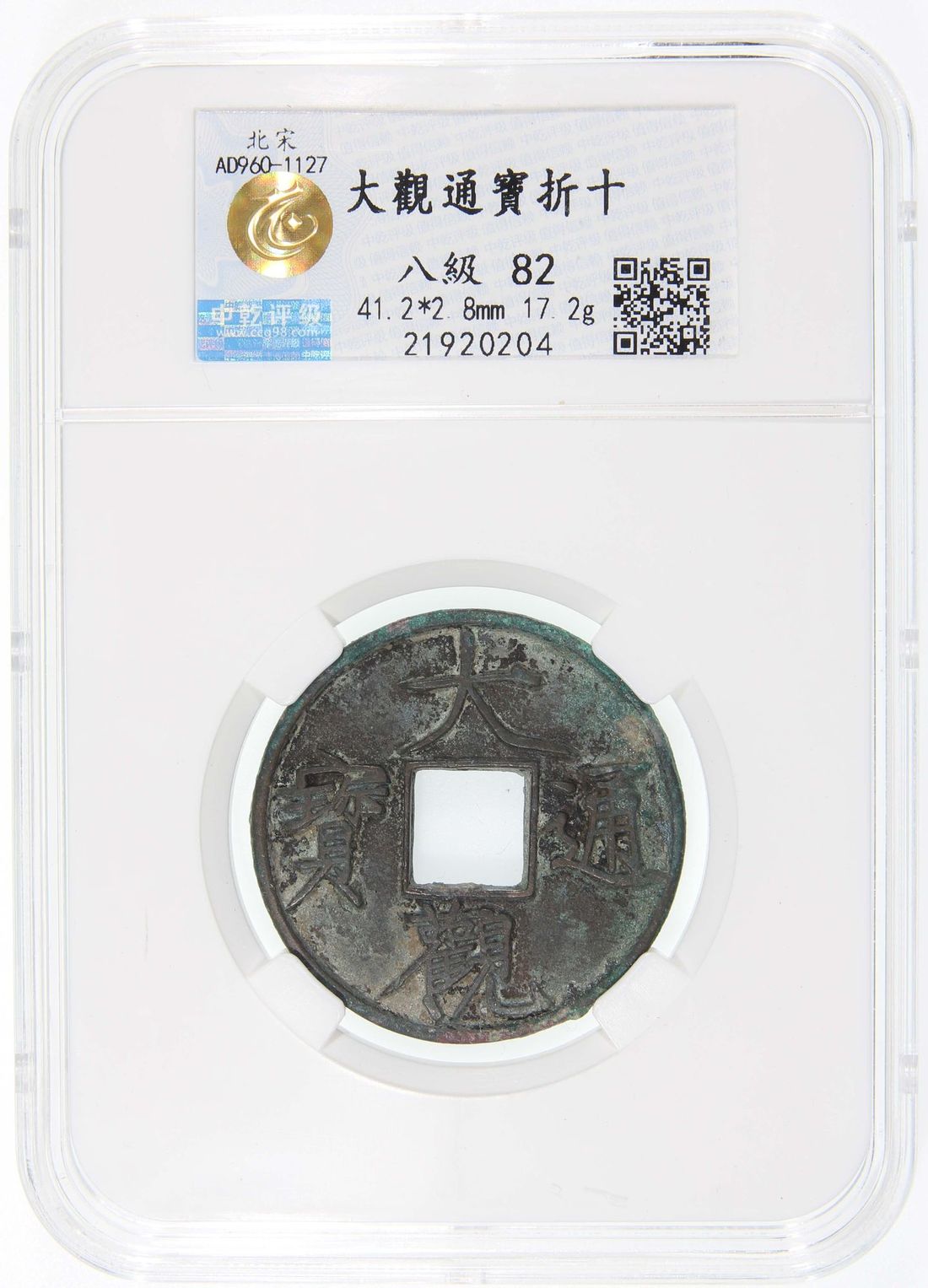 China, Northern Song Dynasty, [Zhong Qian 82] bronze 10 cash, 'Da Guan Tong Bao', 1107-1110, 41.2x2.8mm, weighs 17.2g