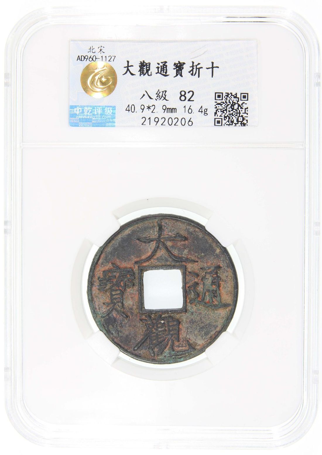 China, Northern Song Dynasty, [Zhong Qian 82] bronze 10 cash, 'Da Guan Tong Bao', 1107-1110, 40.9x2.9mm, weighs 16.4g