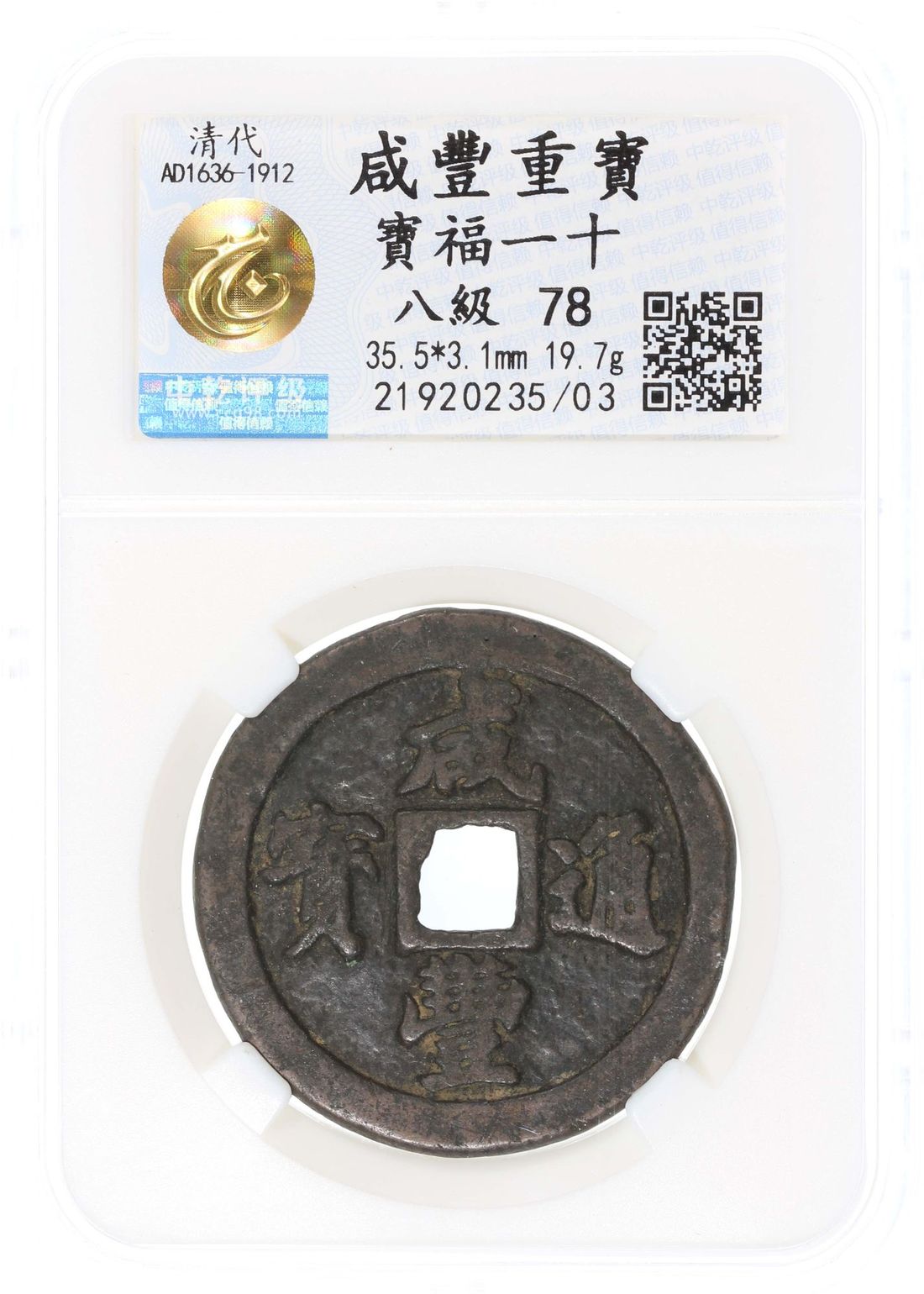 China, Qing Dynasty, [Zhong Qian 78] brass 10 cash, 'Xian Feng Tong Bao', 1853-1861, 'Bao Fu' (Fukien) mint, 35.5x3.1mm, weighs 19.7g