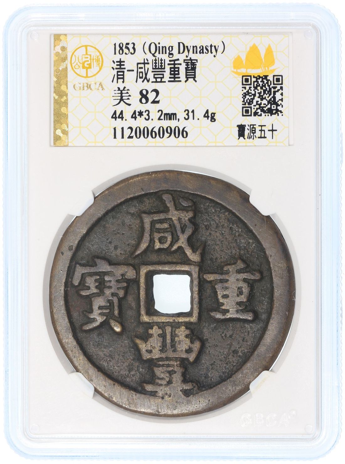 China, Qing Dynasty, copper 50 cash, Xianfeng Zhong Bao, Bao Yuan mint, 44.4x3.2mm, weigh 31.4g., GBCA 82.