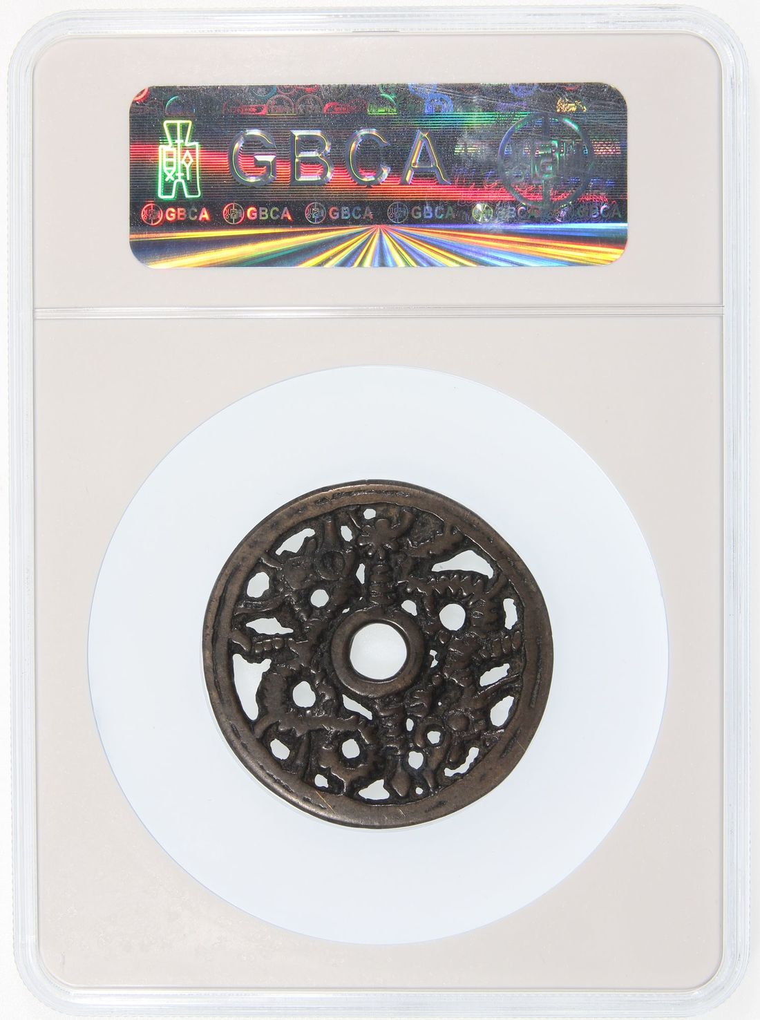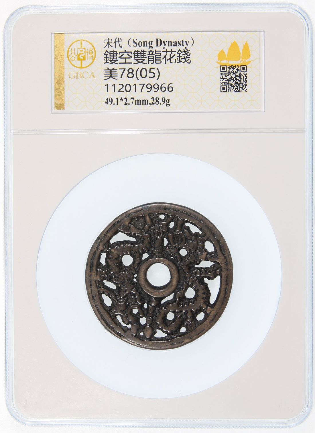 China, Liao / Jin Dynasty, [GBCA 78] openwork charm, two dragons, 49.1x2.7mm, weighs 28.9g. Cracked