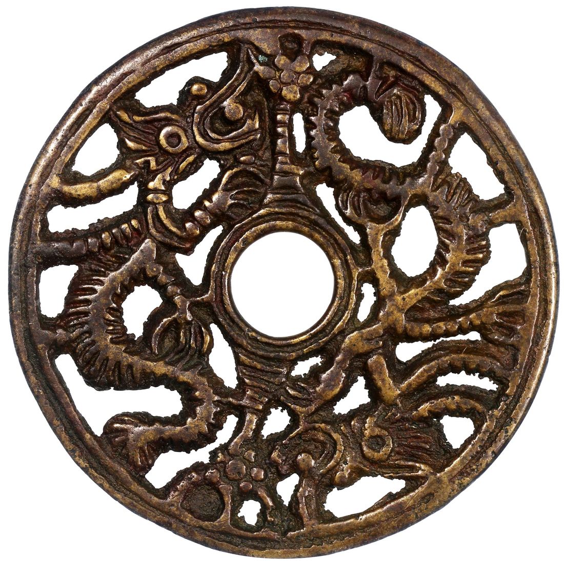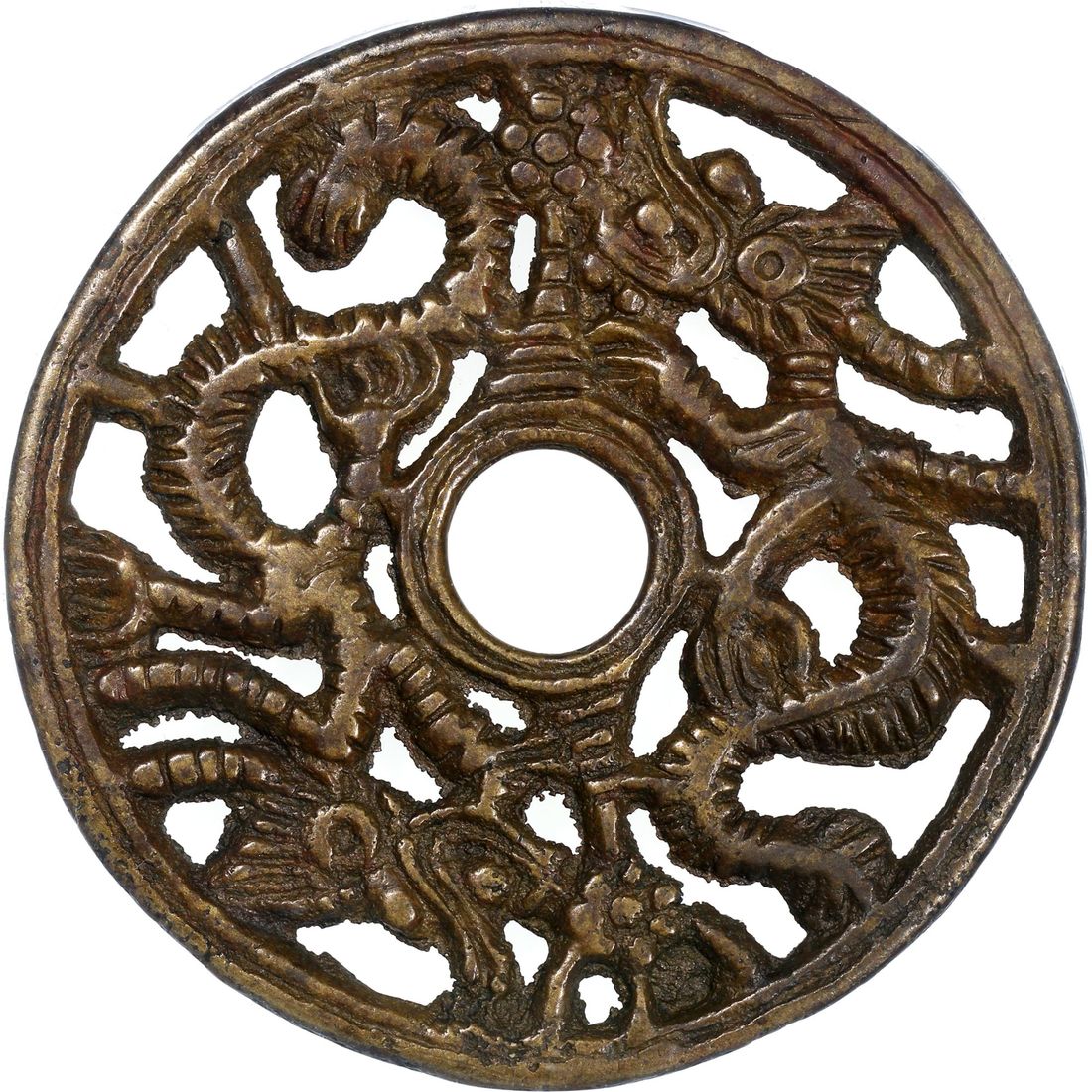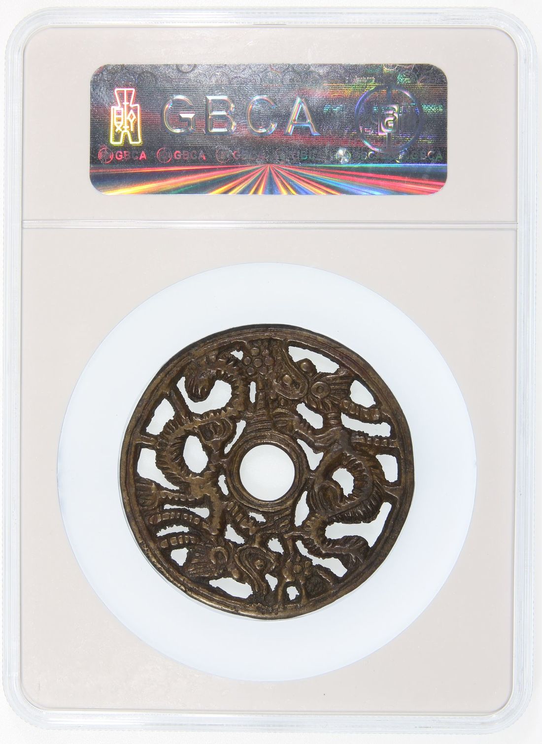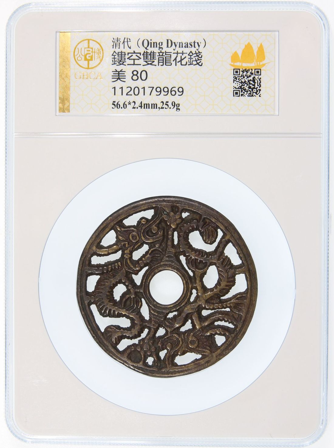 China, Qing Dynasty, [GBCA 80] openwork charm, two dragons, 56.6x2.4mm, weighs 25.9g
