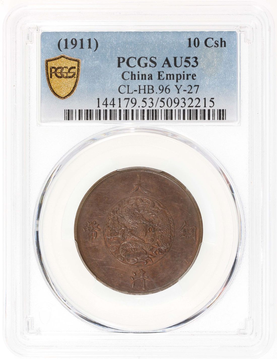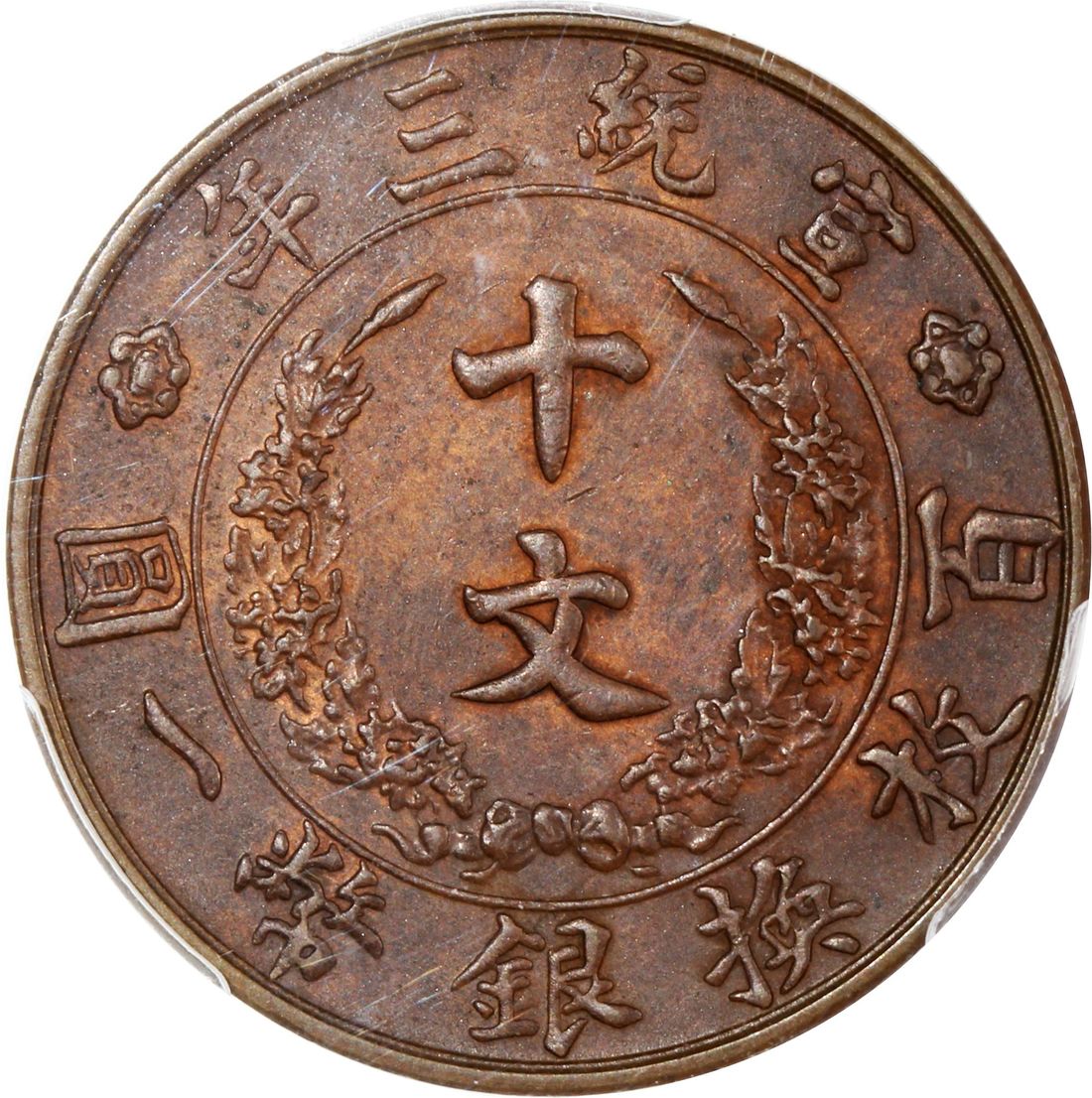 China, Qing Dynasty, [PCGS AU53] copper 10 cash, 3rd year of Xuan Tong (1911), (KM-Y-27, CL-HB.96), Cert. #50932215