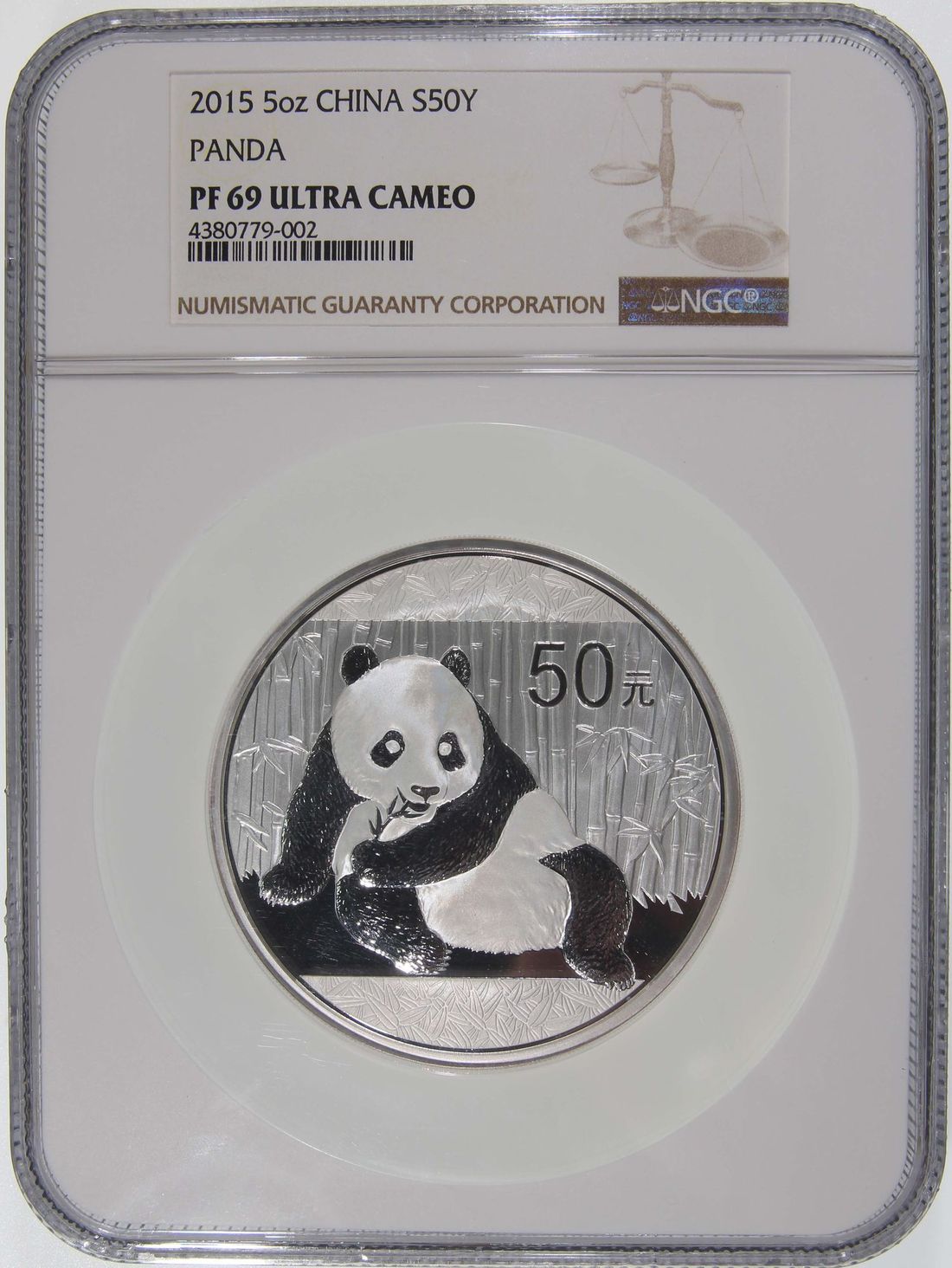 People's Republic of China, [NGC PF69 UC] silver proof 50 yuan, 2015, 'Panda', 5oz,