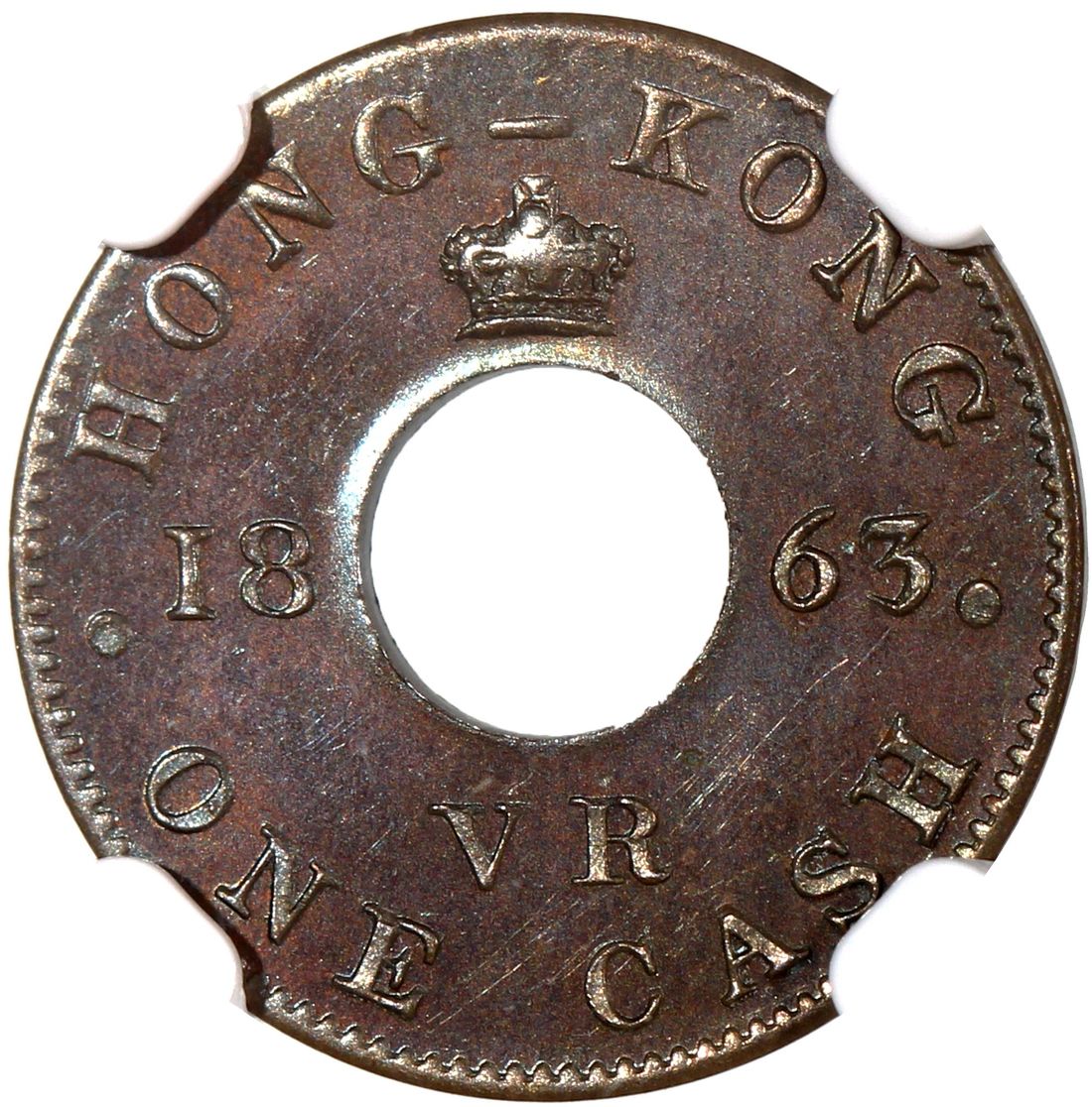 Hong Kong, [NGC PF67BN] copper pattern 1 cash, 1863, (KM-Pn68), Cert. #3871668-003, still highly lustrous with canary and blue toning, sole highest grade in the NGC population report!