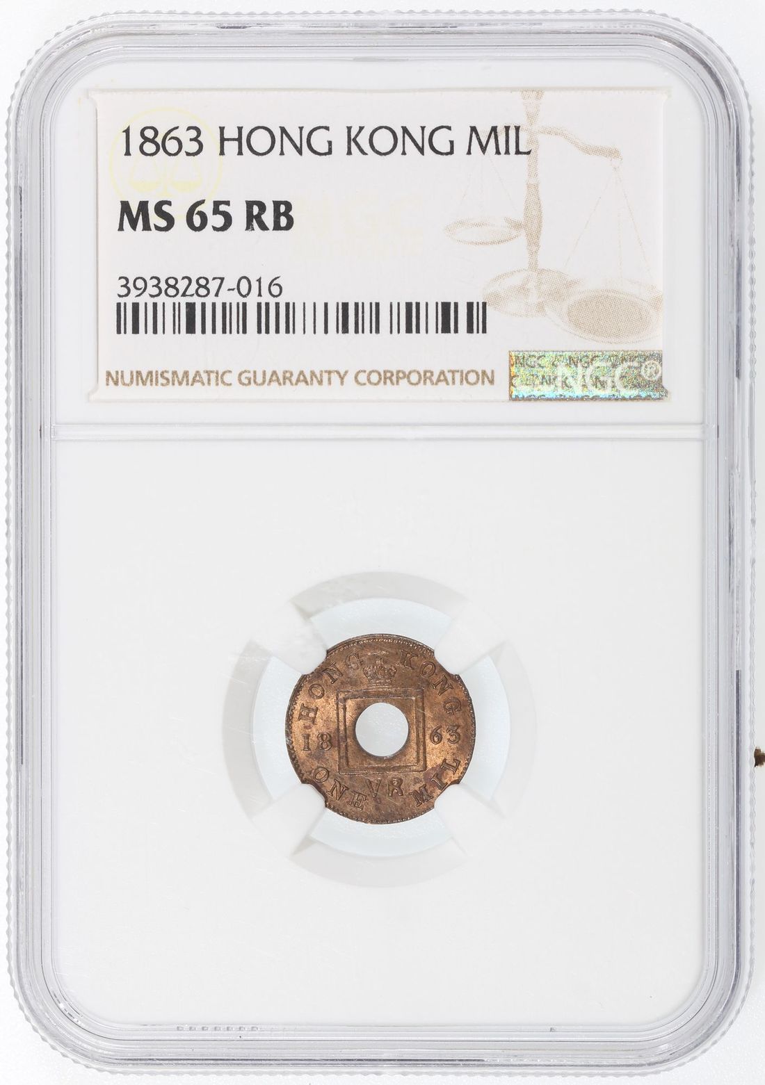 Hong Kong, [NGC MS65RB] bronze 1 mil, 1863, (KM-1), Cert. #3938287-016