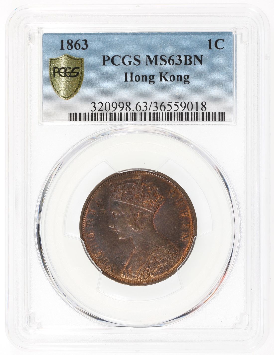 Hong Kong, [PCGS MS63BN] bronze 1 cent, 1863, Victoria on obverse, (KM-4.1), Cert. #36559018