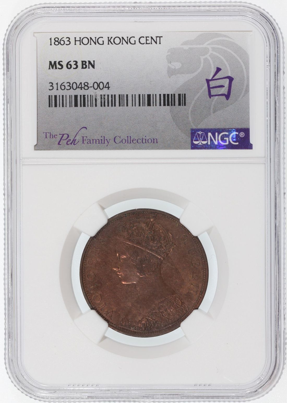 Hong Kong, [NGC MS63BN] bronze 1 cent, 1863, Victoria on obverse, (KM-4.1), Cert. #3163048-004, ex Peh Family Collection