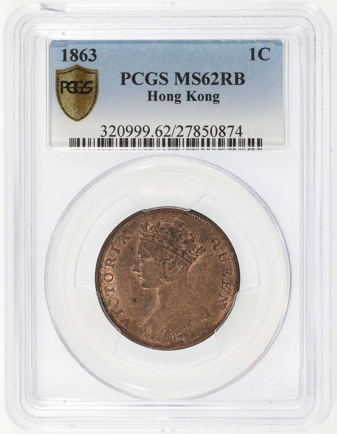 Hong Kong, [PCGS MS62RB] bronze 1 cent, 1863, Victoria on obverse, (KM-4.1), Cert. #27850874
